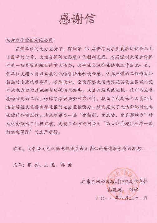 8月23日,世界大学生运动会在深圳圆满落幕,米罗(徐州)空间结构科技发展有限公司作为大运会唯一保电企业见证了世界大学生体育运动的蓬勃发展。米罗(徐州)空间结构科技发展有限公司技术中心系统部与工程部坚守“忠于职守,全力以赴,誓保大运电网安全”的信念,联手实现了大运保供电期间系统零故障、零缺陷的目标。